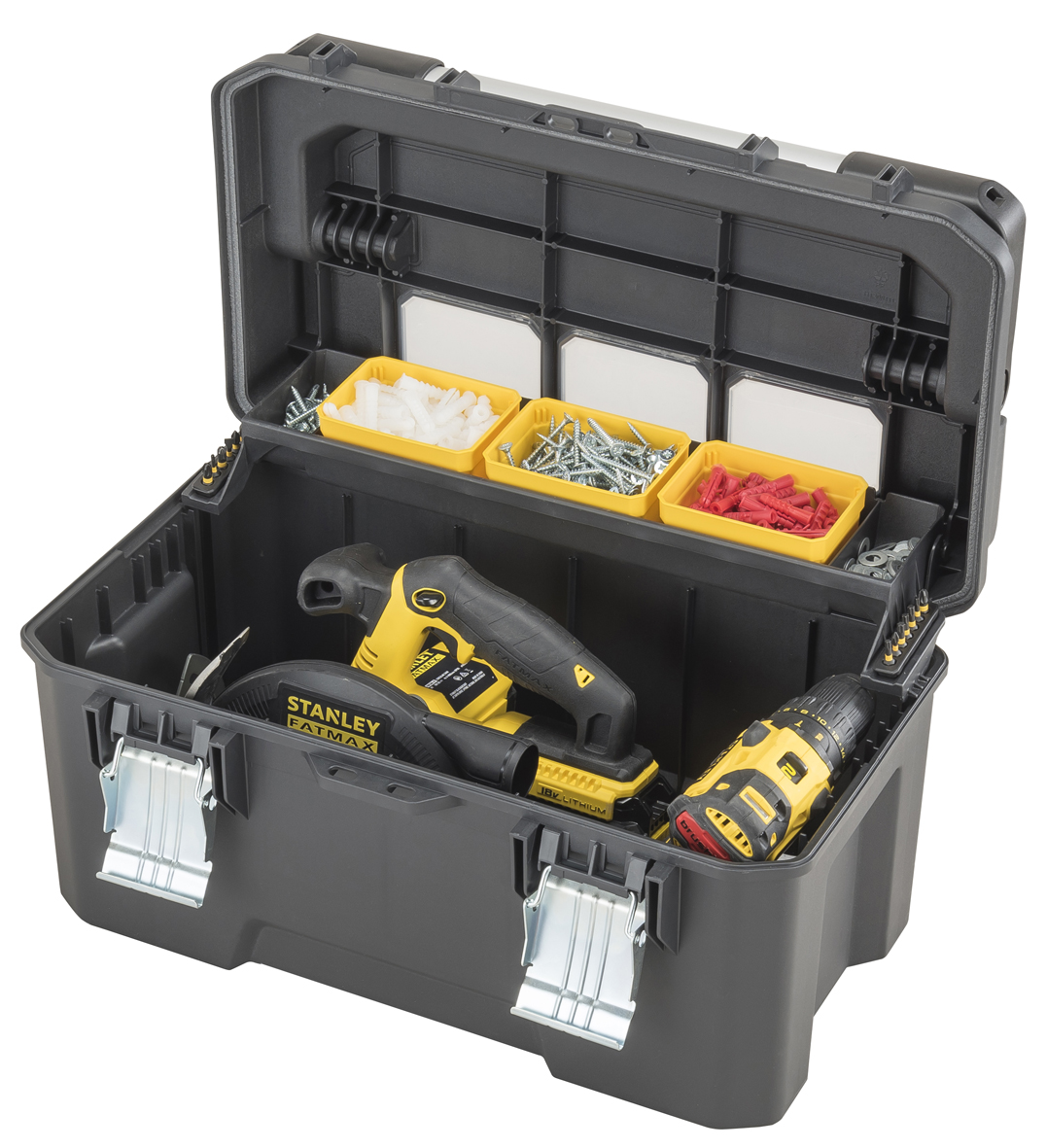 Una cassetta portautensili capiente, organizzata, con rapido accesso agli utensili e massima visibilità della minuteria, ma anche comoda da trasportare, resistente e di design? E’ la nuova Cassetta PRO FATMAX® STANLEY, disponibile in due modelli di diverse dimensioni (capienza 20” e 26”) e sviluppata da STANLEY lavorando fianco a fianco con i professionisti.